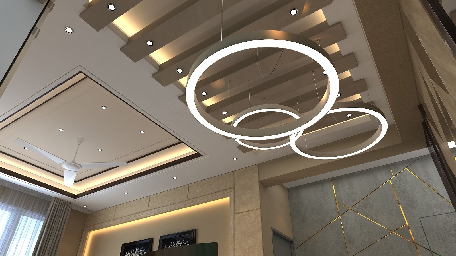 Transform your home with our bespoke false ceiling designs that blend luxury with functionality. From modern POP ceilings to sophisticated layered gypsum board finishes, we specialize in creating architectural depth. Our designs integrate seamless recessed LED lighting and warm cove lighting to enhance the ambiance of your bedroom or living room, ensuring a premium finish that reflects your unique style.